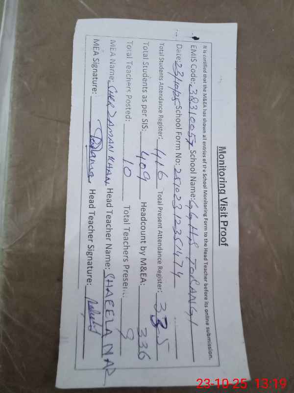 | EMIS Code: 38310057 | Name of School: GGHS TORANGI GHARBI | |||