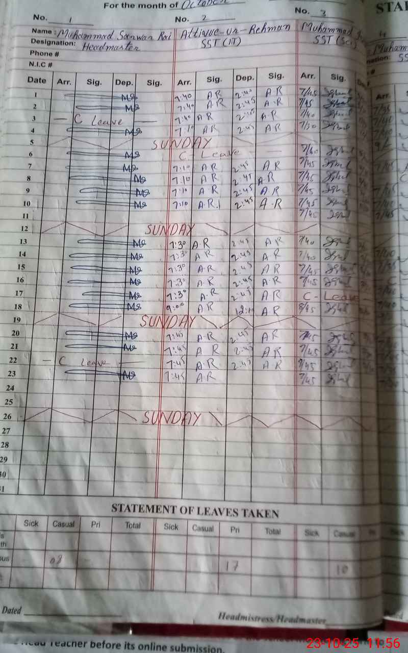 | Name: At**** UrRe**** Designation: (School Headmaster's/Headmistress's) Head Master Phone/Cell Number: 03**** |