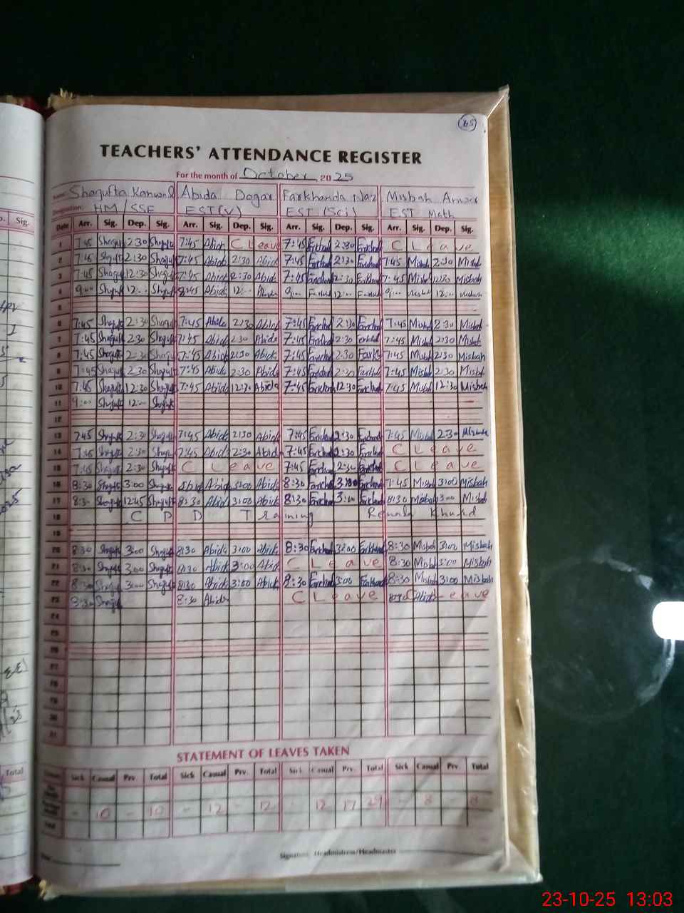 | Leave | Duty | Absent | Maternity | Medical | Ex- Pak |