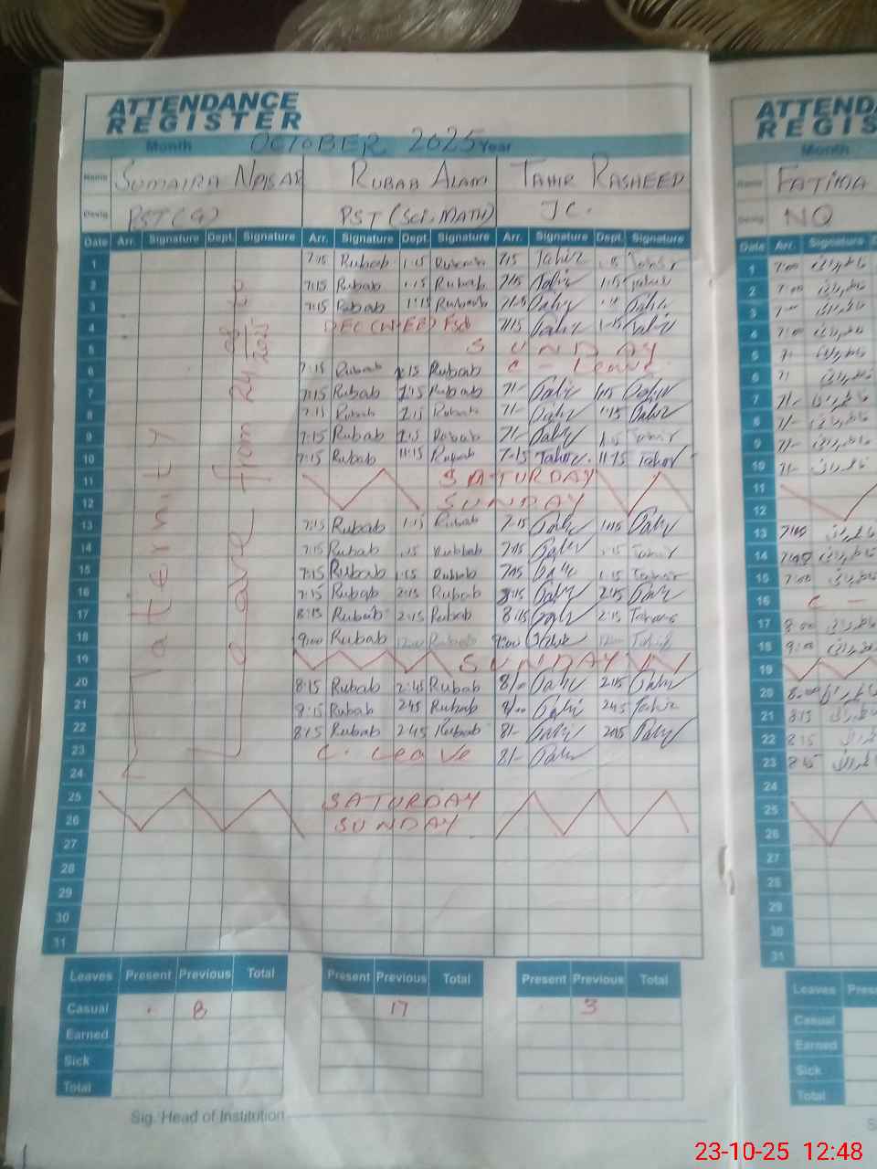 | Leave | Duty | Absent | Maternity | Medical | Ex- Pak |