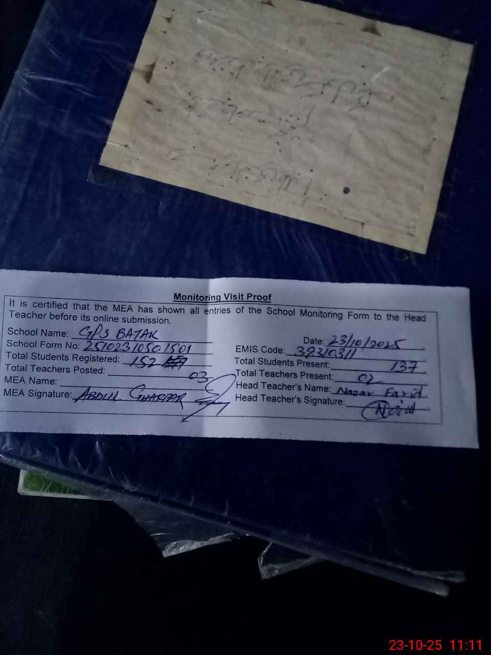 | EMIS Code: 39310311 | Name of School: GPS BATAK | |||