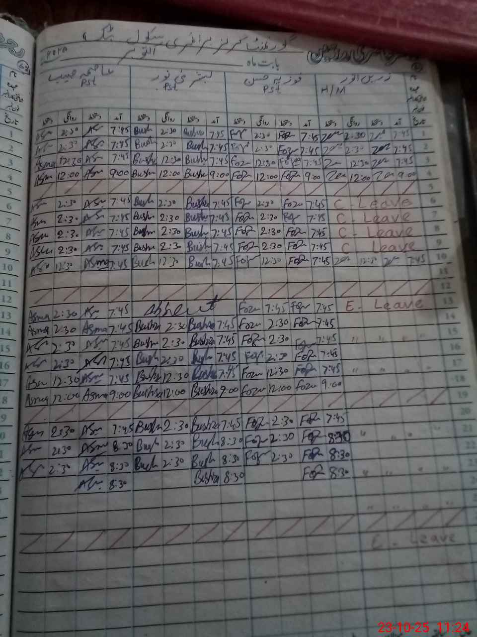 | Leave | Duty | Absent | Maternity | Medical | Ex- Pak |