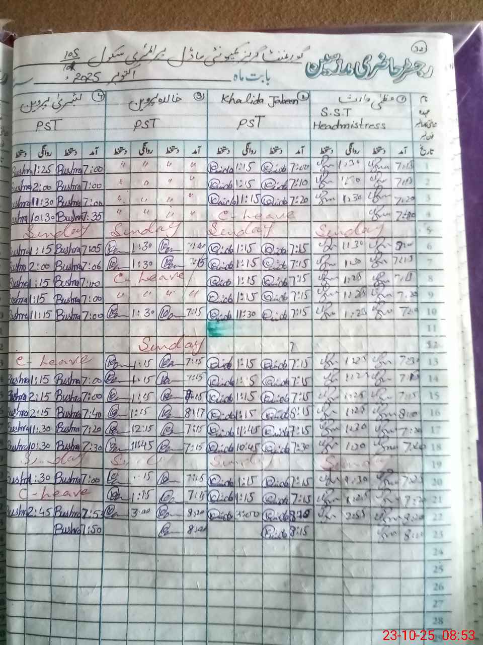| CNIC | Full Name | Designation | R/C | Absence During Last Calender Month |