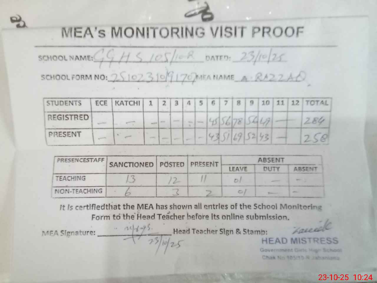 | EMIS Code: 36440056 | Name of School: GGHS 105/10-R, JAHANIAN | |||