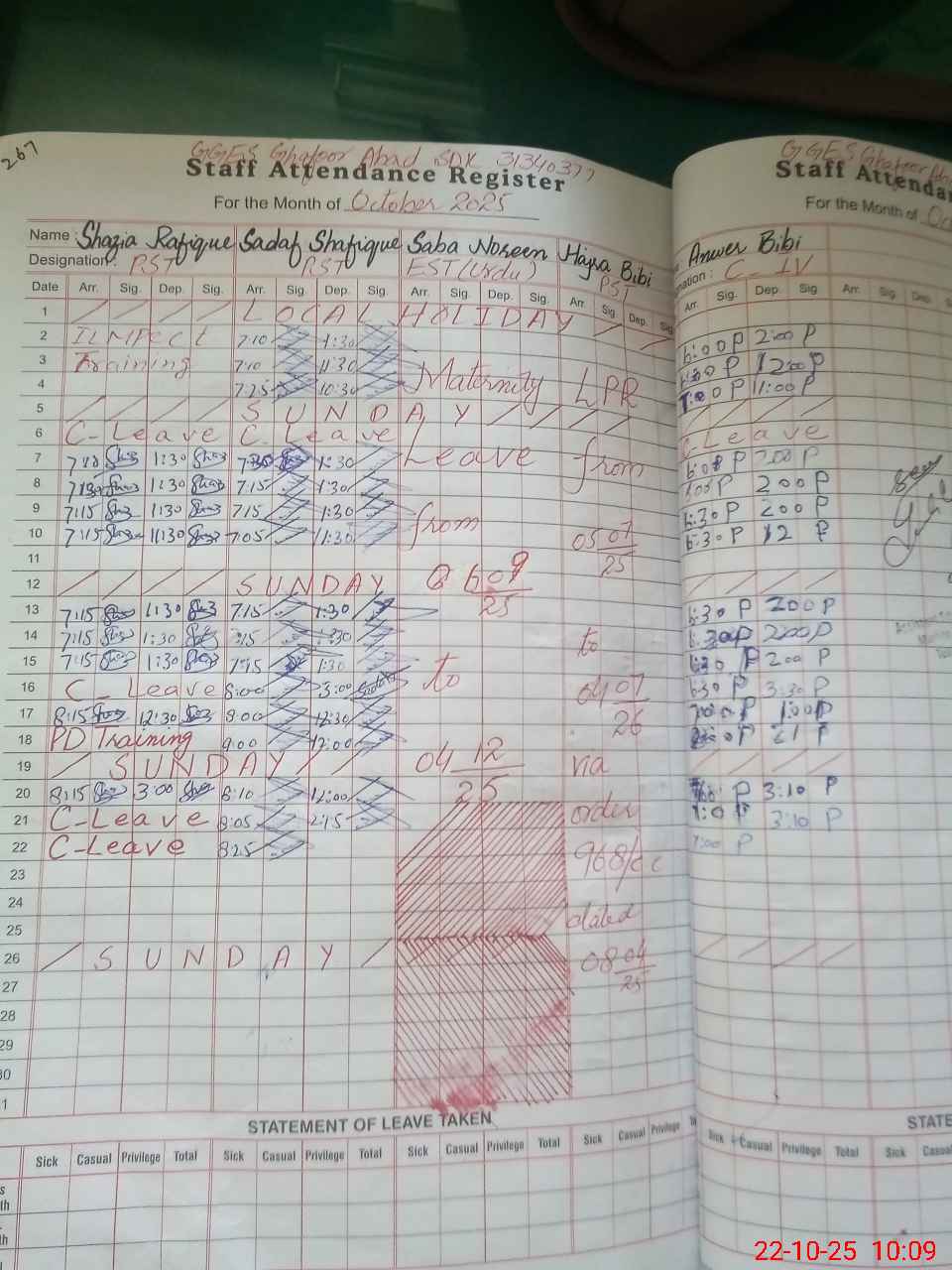 | 31**** | Sa**** No**** | Regular | 25 | 0 | 0 | 25 | 0 | 0 | 0 | 0 | 0 | Maternity | |