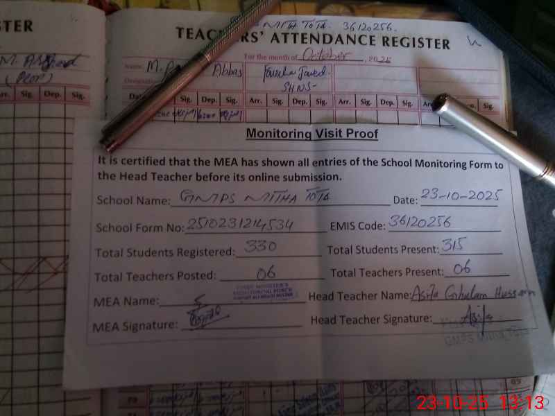 | EMIS Code: 36120256 | Name of School: GMPS MITTHA TOTA SHUJA ABAD | |||