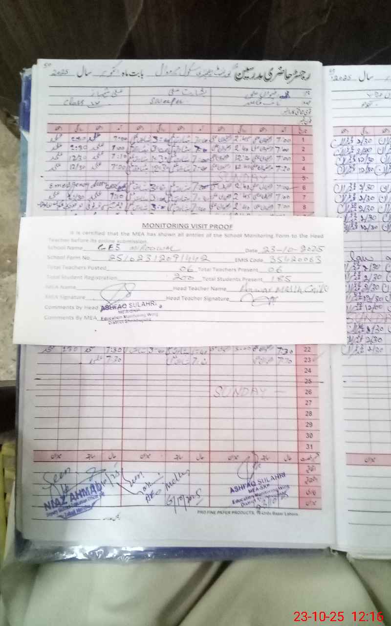 | Attendance Register | Head Teacher | MEA with School | Visit Proof |