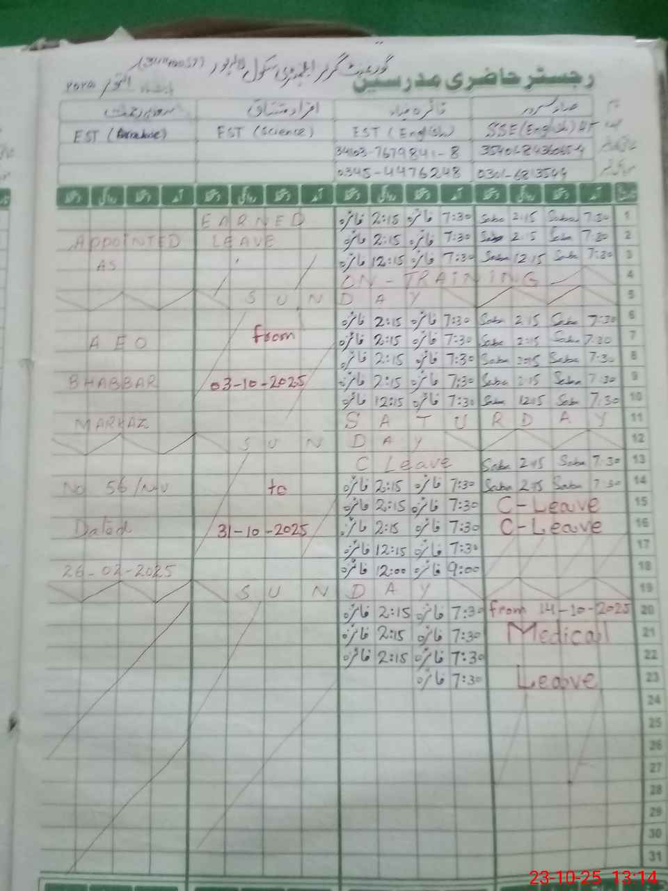 | CNIC | Full Name | Designation | R/C | Absence During Last Calender Month |