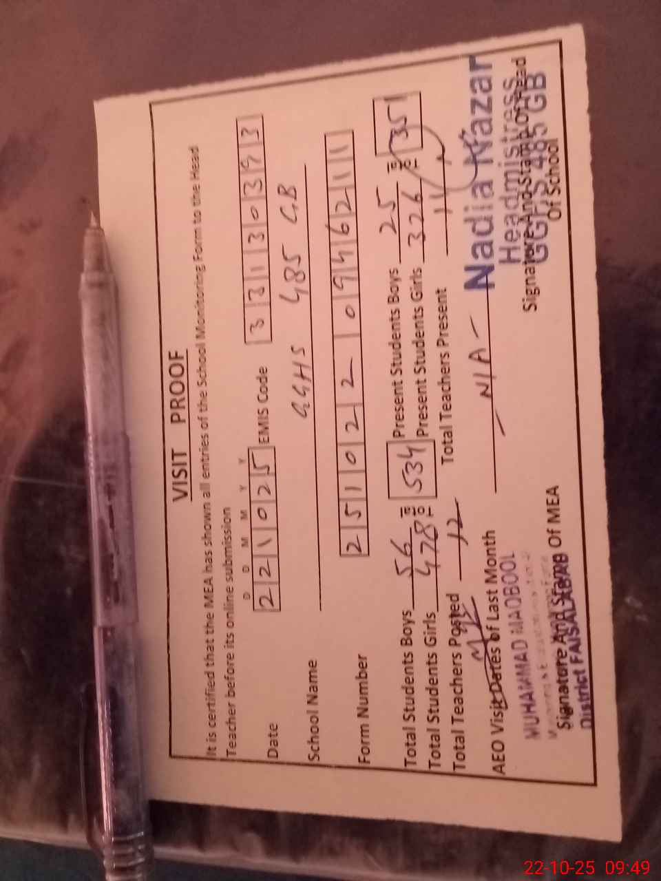 | Certified that this School was Inspected by the Undersigned MEA/DMO Today and the Information Stated Above is as Per Record. | |||||
