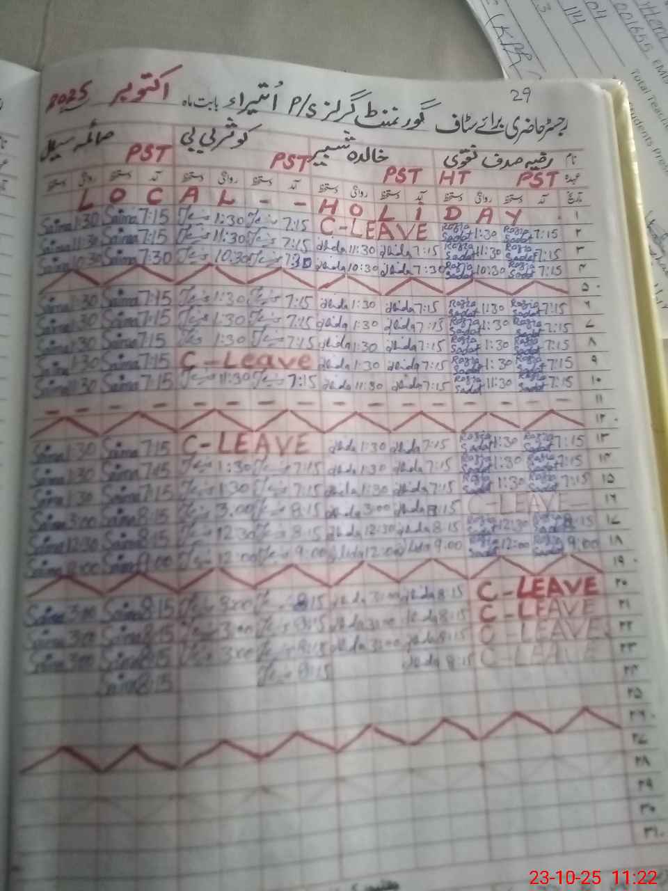 | Leave | Duty | Absent | Maternity | Medical | Ex- Pak |