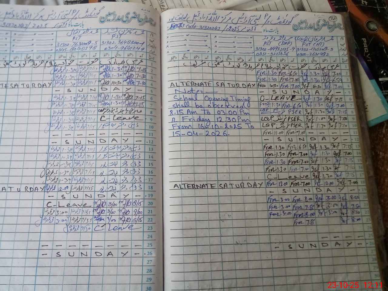 | Name: MU**** IR**** Designation: (School Headmaster's/Headmistress's) PST Phone/Cell Number: 03**** |
