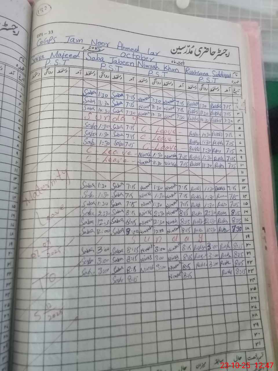 | 31**** | Sa**** Ma**** | PST | Regular | 0 | 0 | 0 | 0 | 0 | 0 | 0 | 0 | 0 | Maternity |