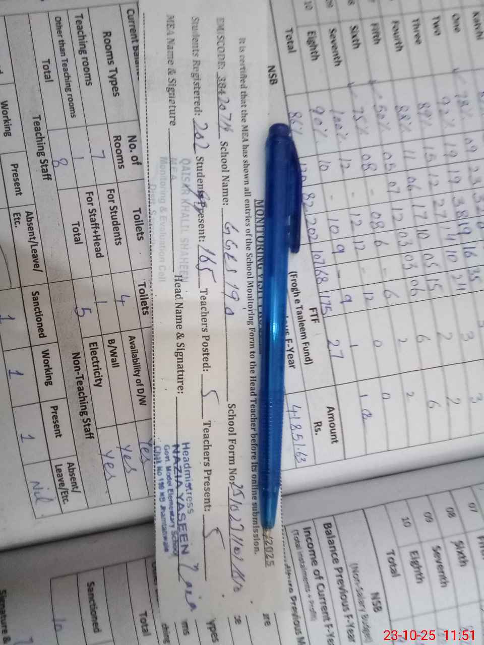 | Certified that this School was Inspected by the Undersigned MEA/DMO Today and the Information Stated Above is as Per Record. | |||||