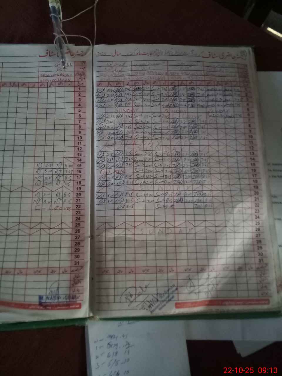 | CNIC | Full Name | Designation | R/C | Absence During Last Calender Month |