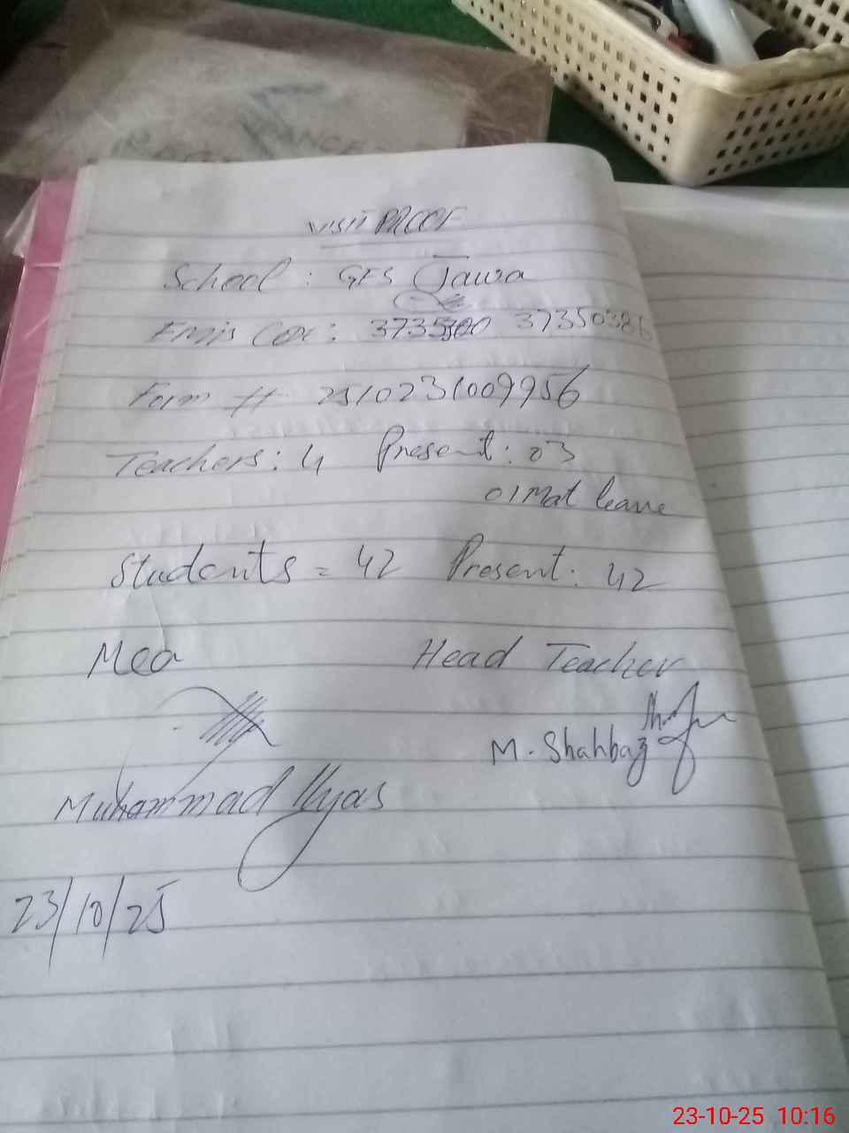 | Certified that this School was Inspected by the Undersigned MEA/DMO Today and the Information Stated Above is as Per Record. | |||||
