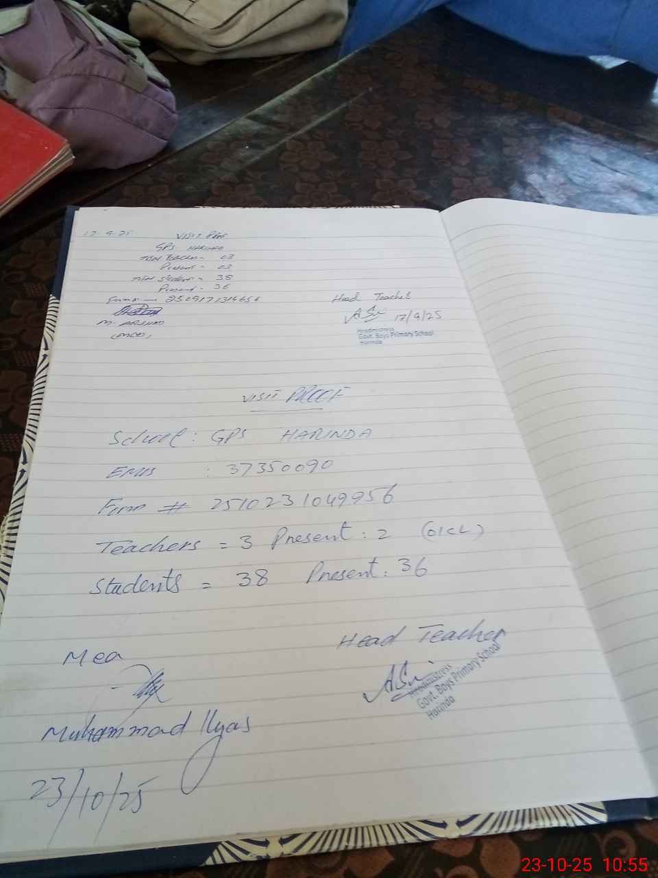 | Attendance Register | Head Teacher | MEA with School | Visit Proof |