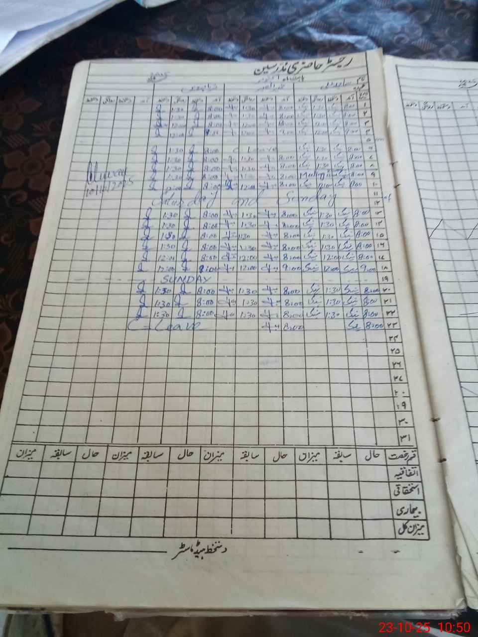 | CNIC | Full Name | Designation | R/C | Absence During Last Calender Month |