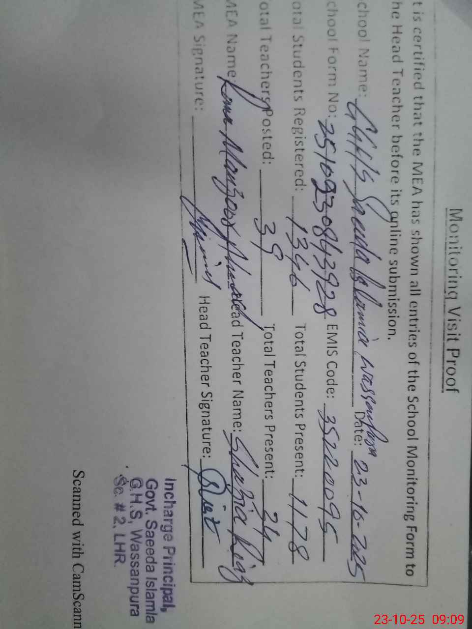 | EMIS Code: 35220095 | Name of School: GGHS SAEEDA ISLAMIA WASSAN PURA SCHEME NO 2 | |||