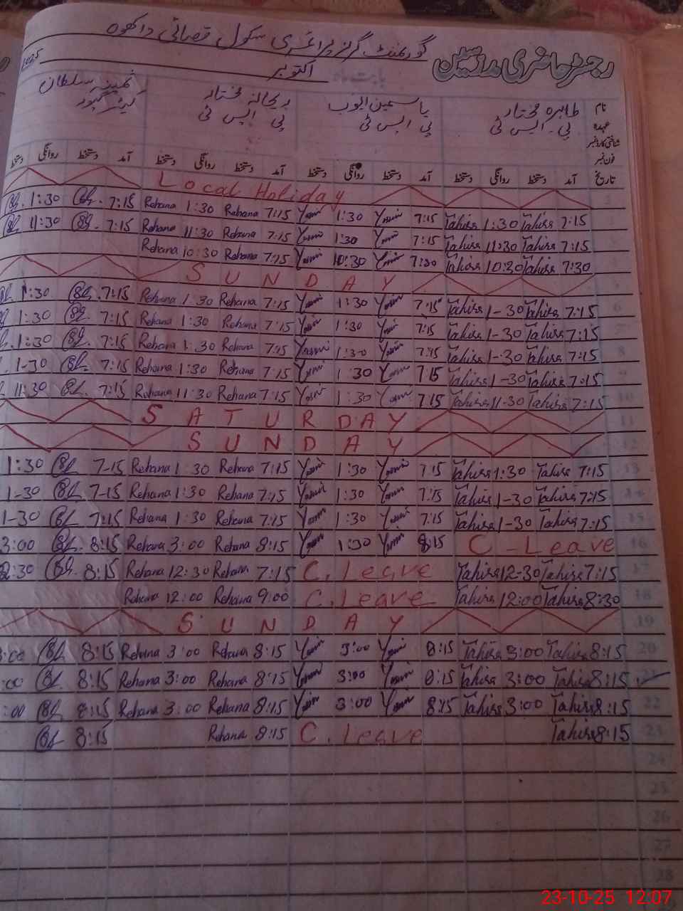 | CNIC | Full Name | Designation | R/C | Absence During Last Calender Month |