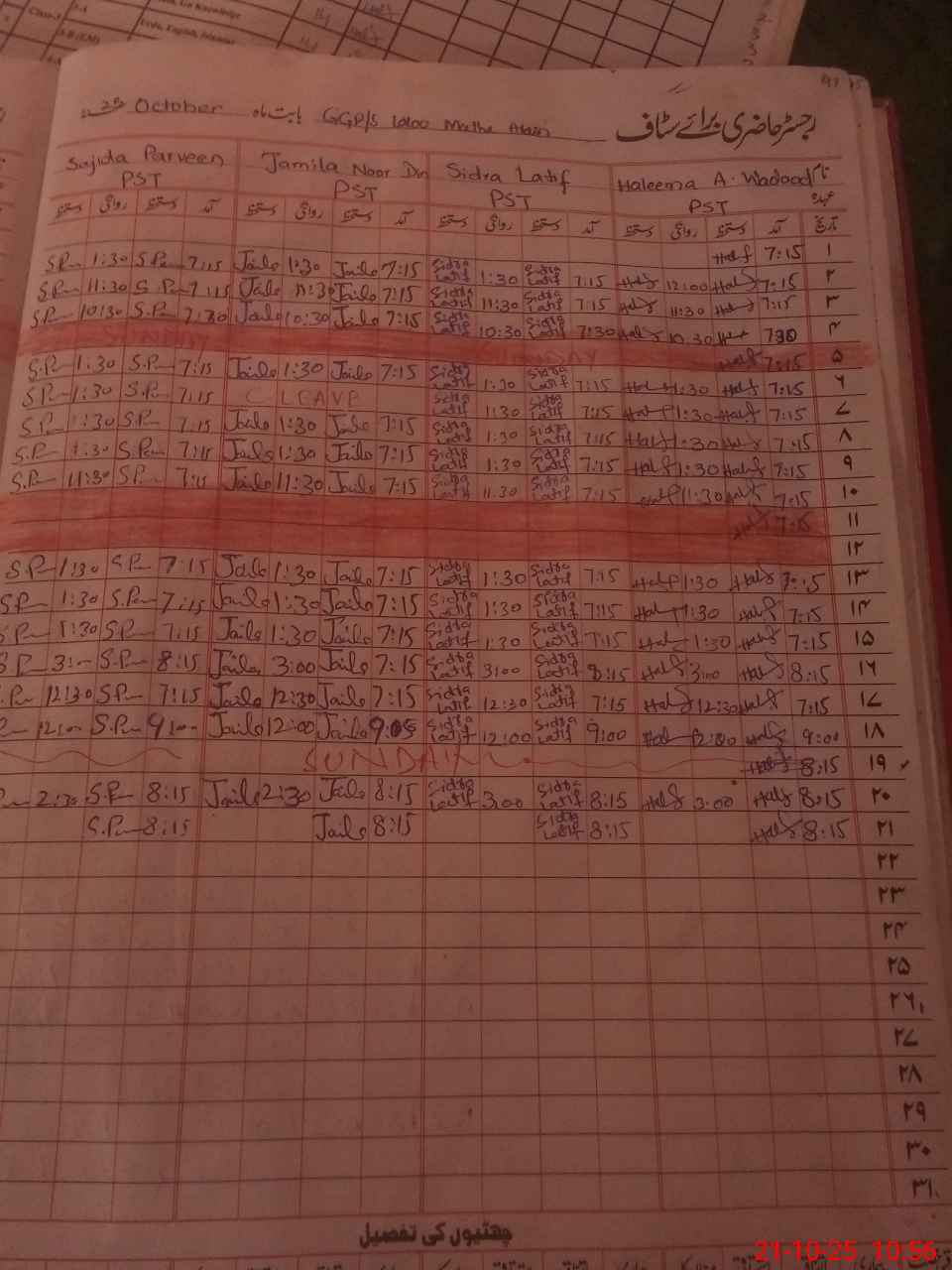 | CNIC | Full Name | Designation | R/C | Absence During Last Calender Month |