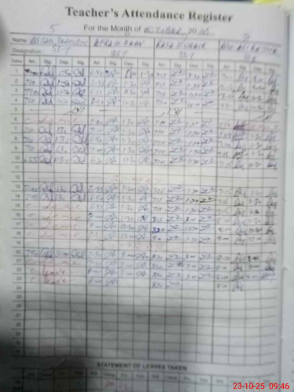| 37**** | As**** Al**** | SST | Regular | 0 | 0 | 0 | 0 | 0 | 0 | 0 | 0 | 0 | Absent (Un-Authorized) |