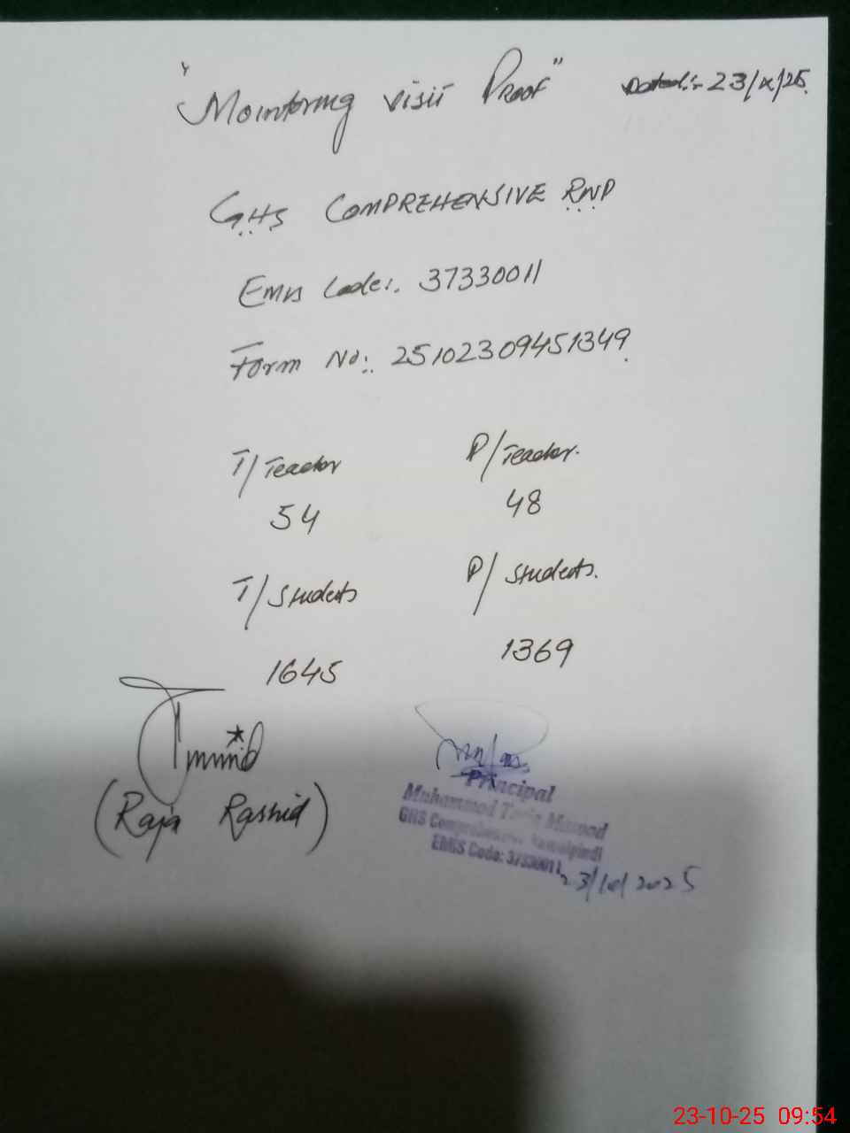 | EMIS Code: 37330011 | Name of School: GHS COMPREHENSIVE RAWALPINDI | |||