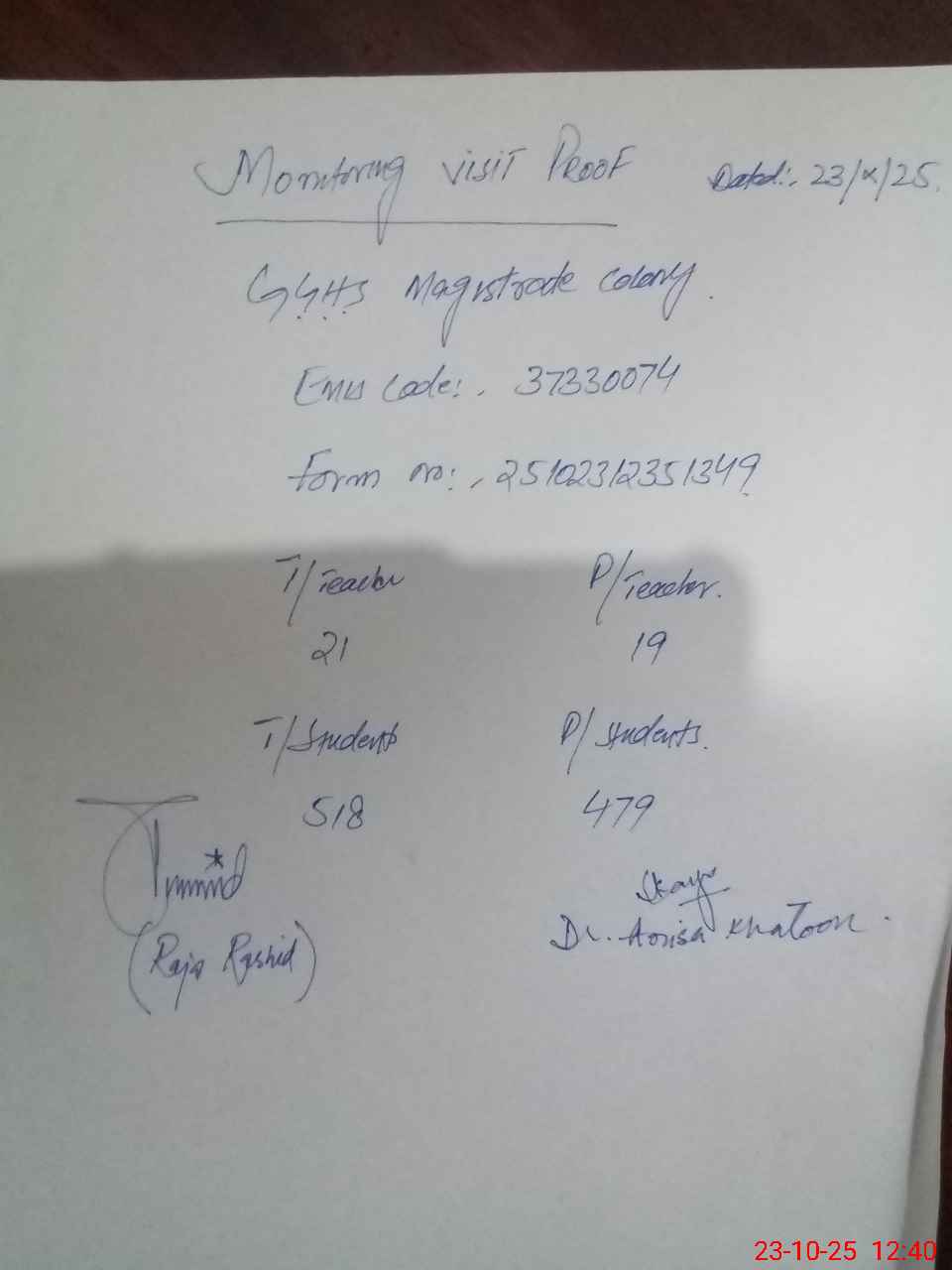 | EMIS Code: 37330074 | Name of School: GGHS MAGISTRATE COLONY | |||