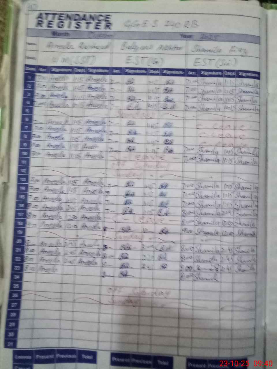 | Leave | Duty | Absent | Maternity | Medical | Ex- Pak |