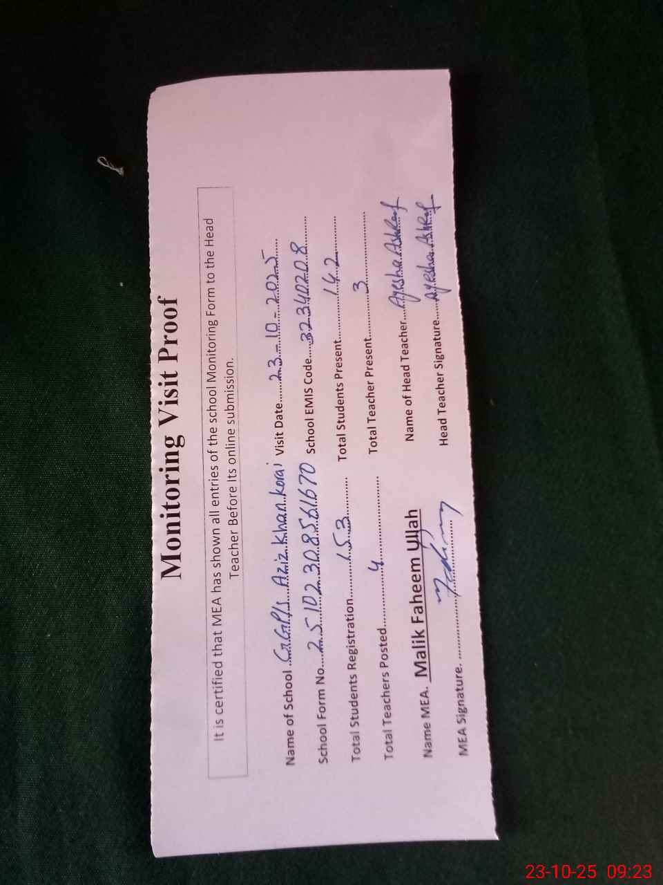 | EMIS Code: 32340208 | Name of School: GGPS AZIZ KHAN KORAI | |||