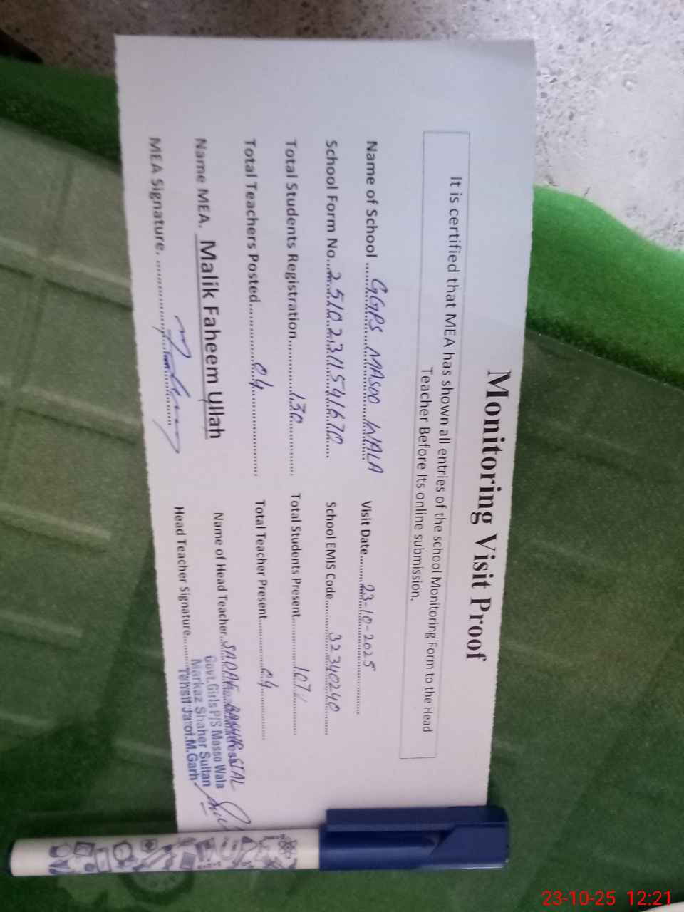 | EMIS Code: 32340240 | Name of School: GGPS MASOO WALA | |||