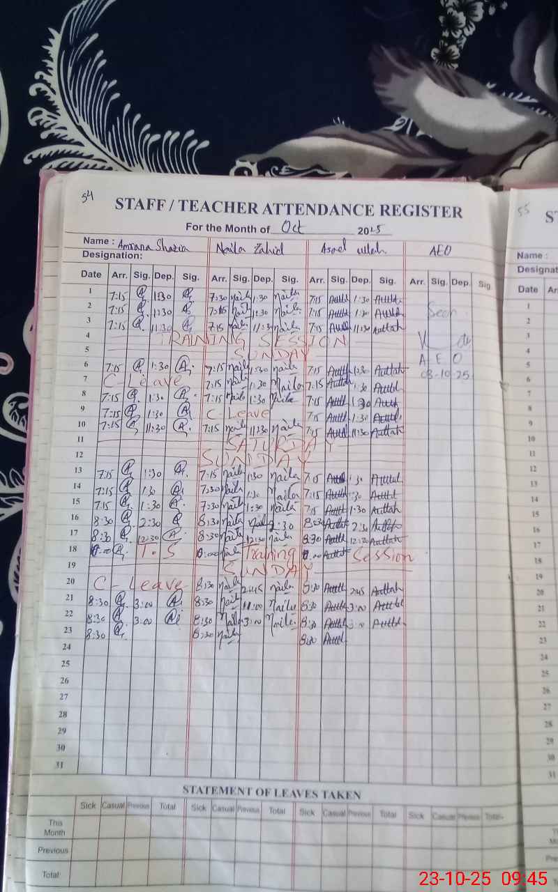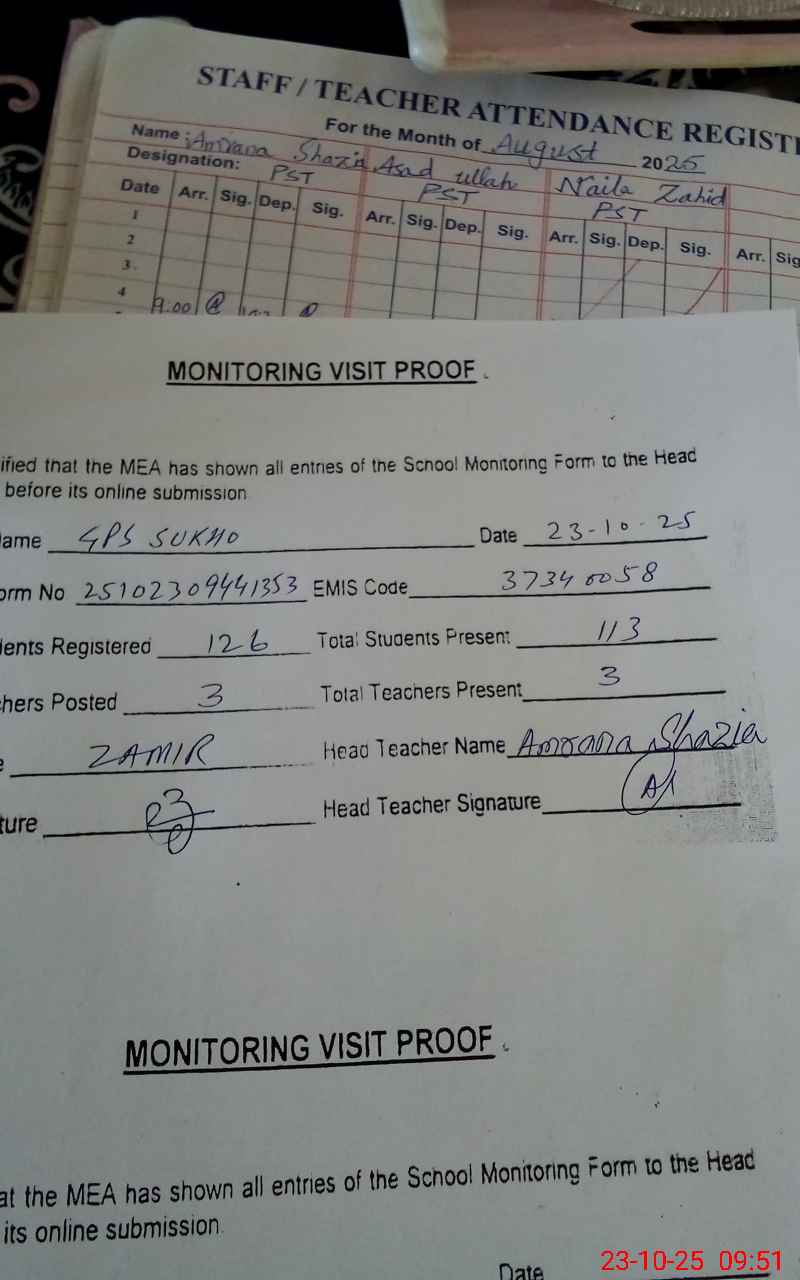 | Attendance Register | Head Teacher | MEA with School | Visit Proof |