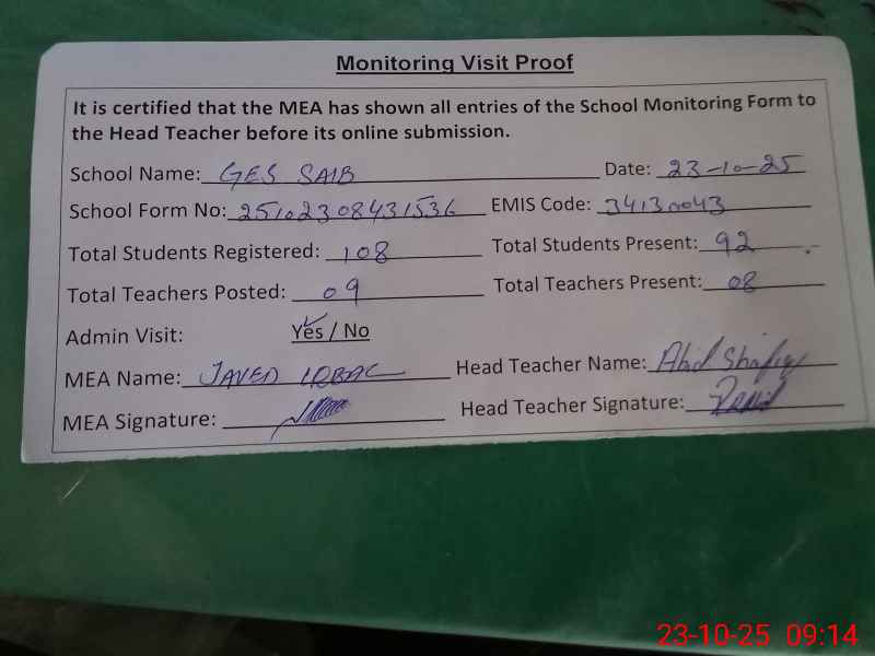 | EMIS Code: 34130043 | Name of School: GES SAIB | |||