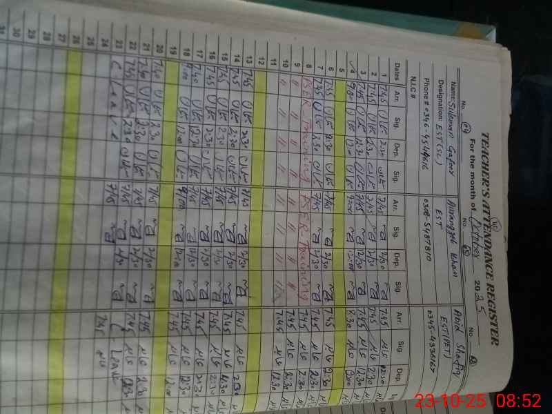 | Name: AB**** SH**** Designation: (School Headmaster's/Headmistress's) EST Phone/Cell Number: 03**** |