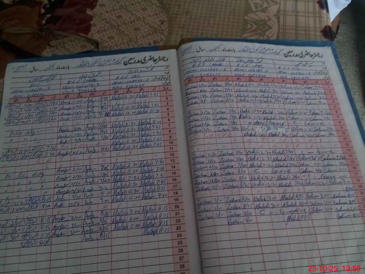 | Leave | Duty | Absent | Maternity | Medical | Ex- Pak |