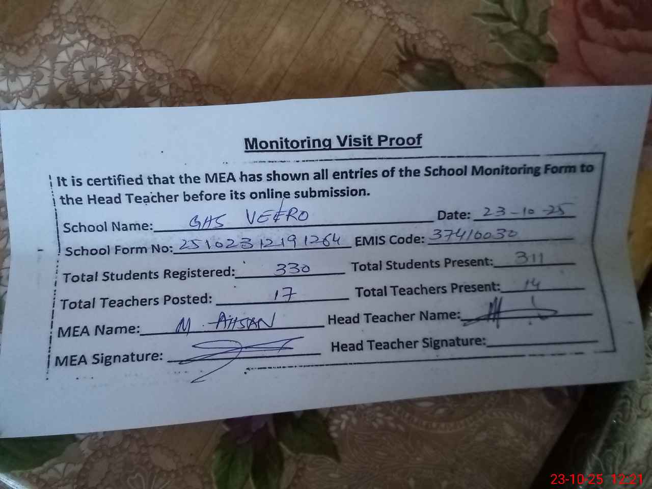 | EMIS Code: 37410030 | Name of School: GHS VERO CHAKWAL | |||
