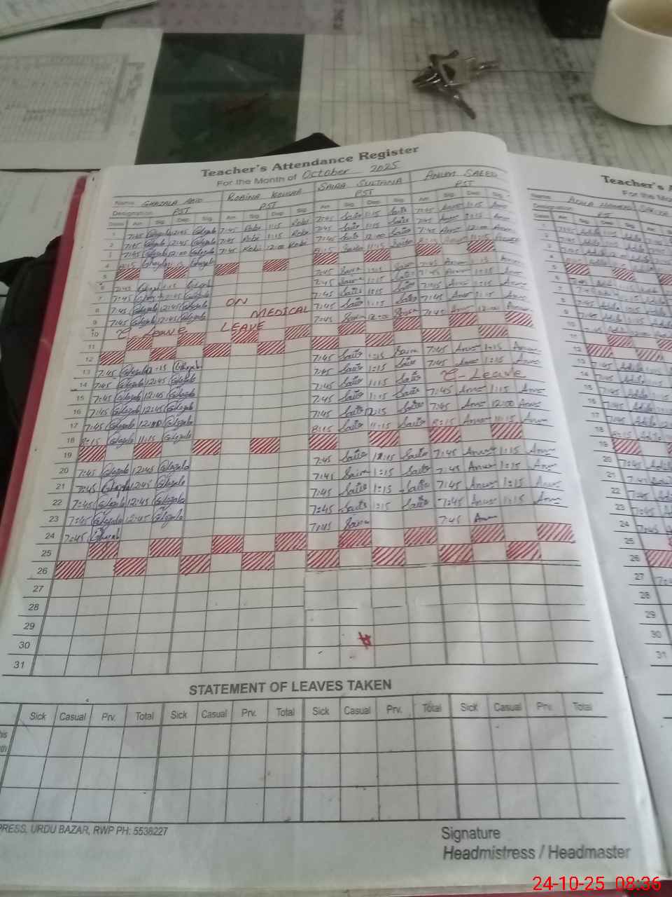 | Leave | Duty | Absent | Maternity | Medical | Ex- Pak |