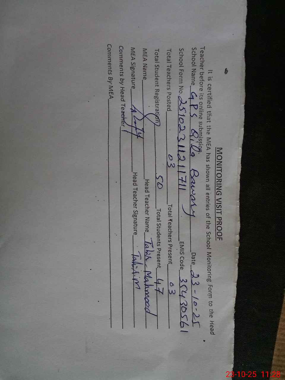 | EMIS Code: 35430561 | Name of School: GPS QILA BAWARY | |||