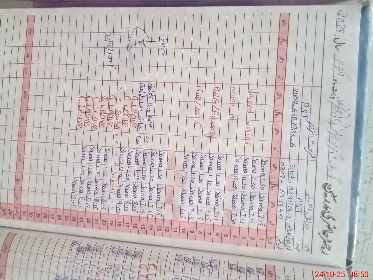 | Remarks (Use Separate Page if Required): Pst Farhat Nazir absent without sanctioned leave since 17 October 2025 | |||||