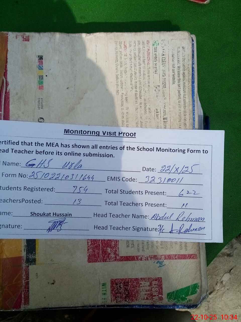| Name: MU**** AA**** FA**** Designation: (School Headmaster's/Headmistress's) SHM Phone/Cell Number: 03**** |