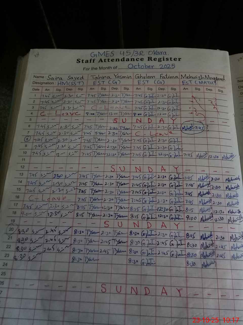 | CNIC | Full Name | Designation | R/C | Absence During Last Calender Month |