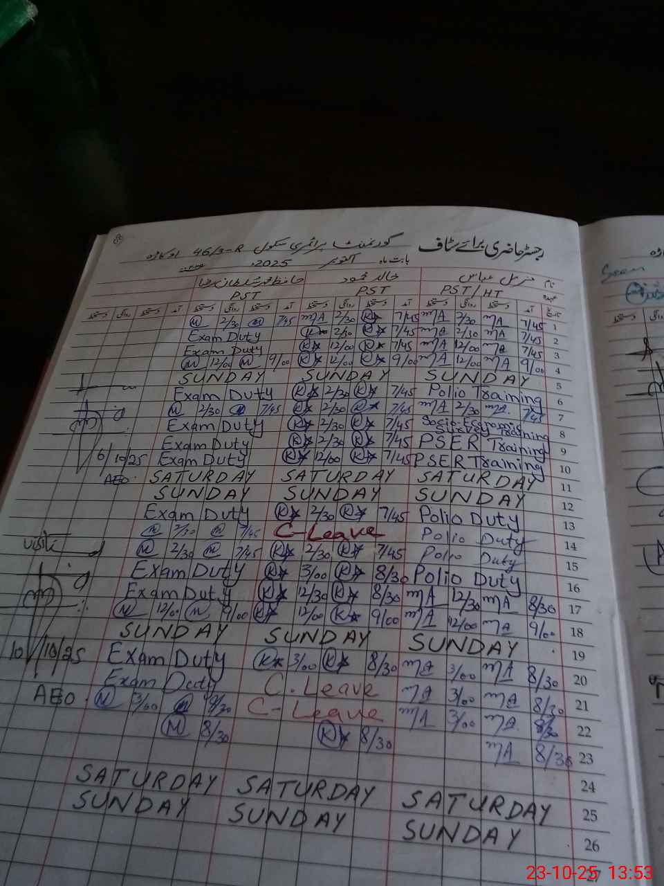 | Leave | Duty | Absent | Maternity | Medical | Ex- Pak |