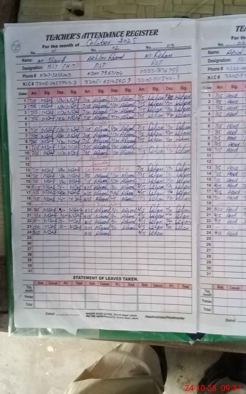 | Name: MU**** SH**** Designation: (School Headmaster's/Headmistress's) EST (GENERAL) Phone/Cell Number: 03**** |