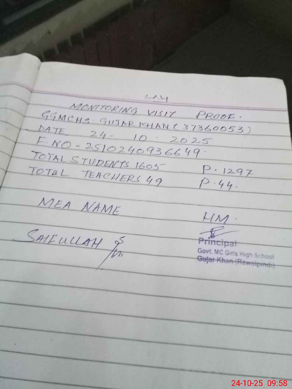 | EMIS Code: 37360053 | Name of School: GGHS MC GUJAR KHAN | |||