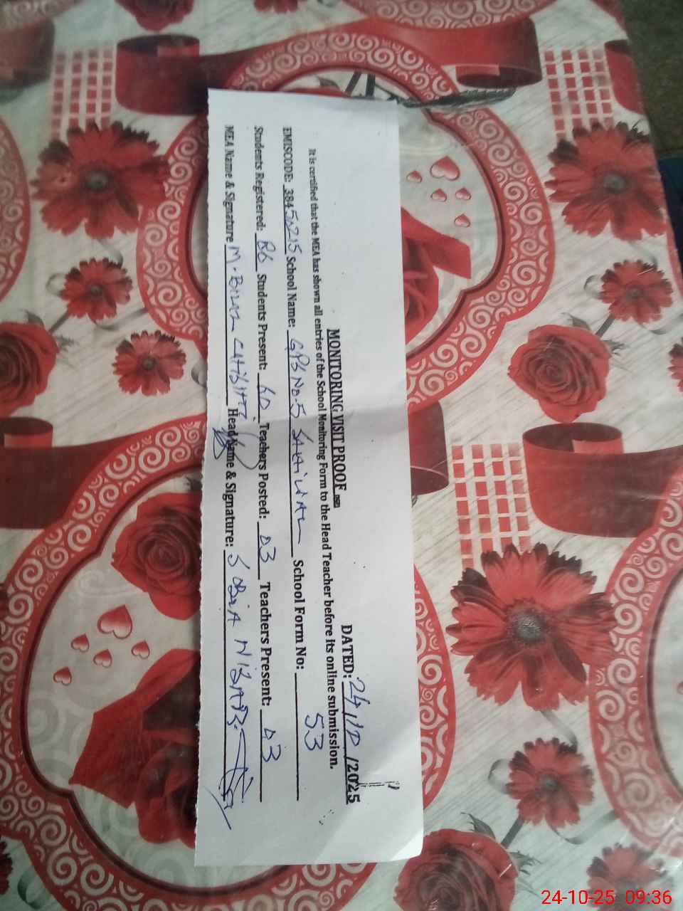 | Certified that this School was Inspected by the Undersigned MEA/DMO Today and the Information Stated Above is as Per Record. | |||||