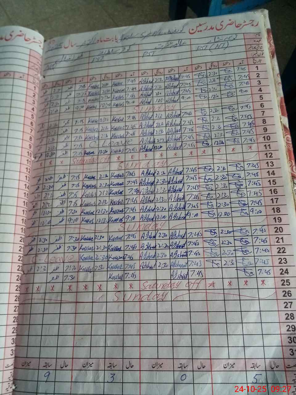 | Leave | Duty | Absent | Maternity | Medical | Ex- Pak |