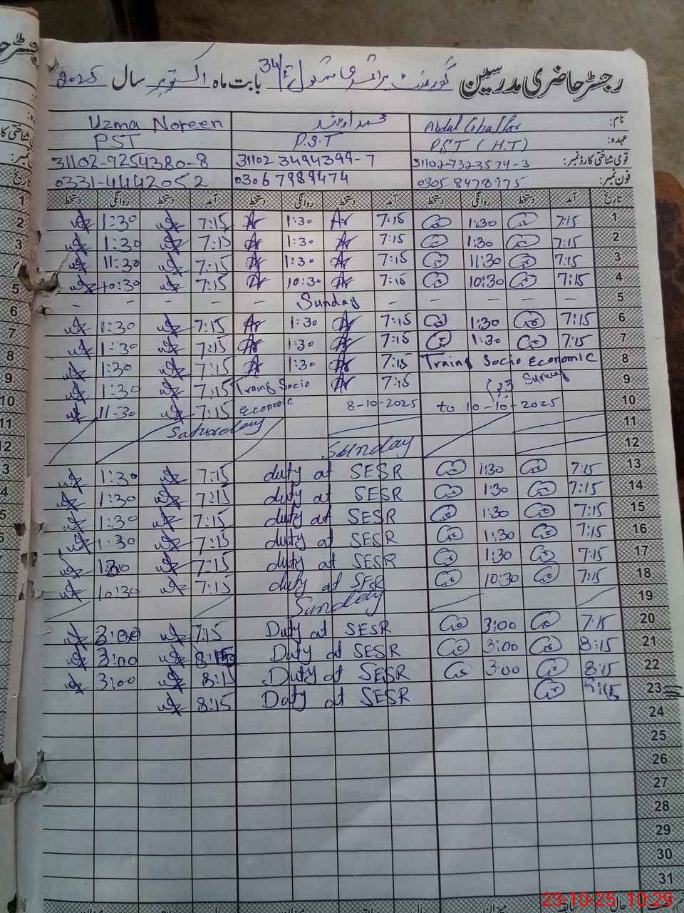 | CNIC | Full Name | Designation | R/C | Absence During Last Calender Month |