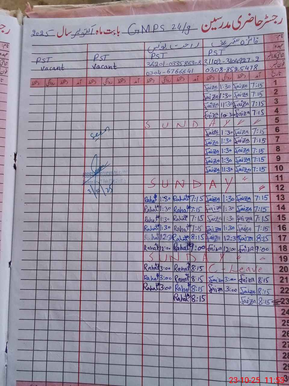 | Name: Fa**** Sh**** Designation: (School Headmaster's/Headmistress's) PST Phone/Cell Number: 03**** |