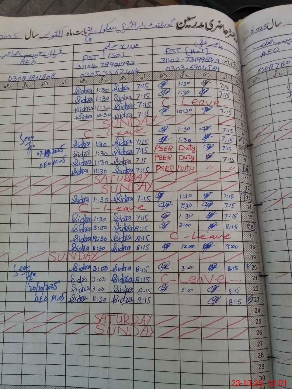 | Leave | Duty | Absent | Maternity | Medical | Ex- Pak |