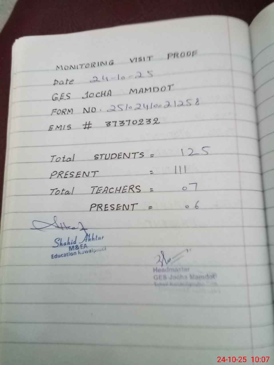 | EMIS Code: 37370232 | Name of School: GES JOCHA MAMDOT | |||