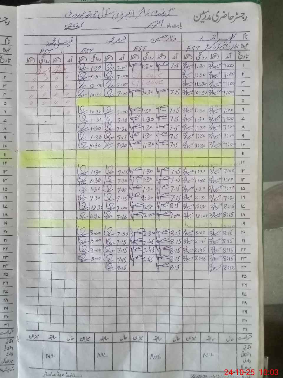 | 37**** | Kh**** Ba**** Al**** | PST | Regular | 0 | 0 | 0 | 0 | 0 | 0 | 0 | 0 | 0 | Casual |